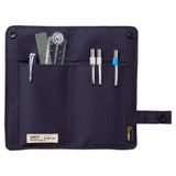 ・ペンケースとして使用するには、ペンケースの上部を折り曲げ真ん中で二つ折にして背面のボタンを留めるだけ。(ボタンは上と下の二か所)
