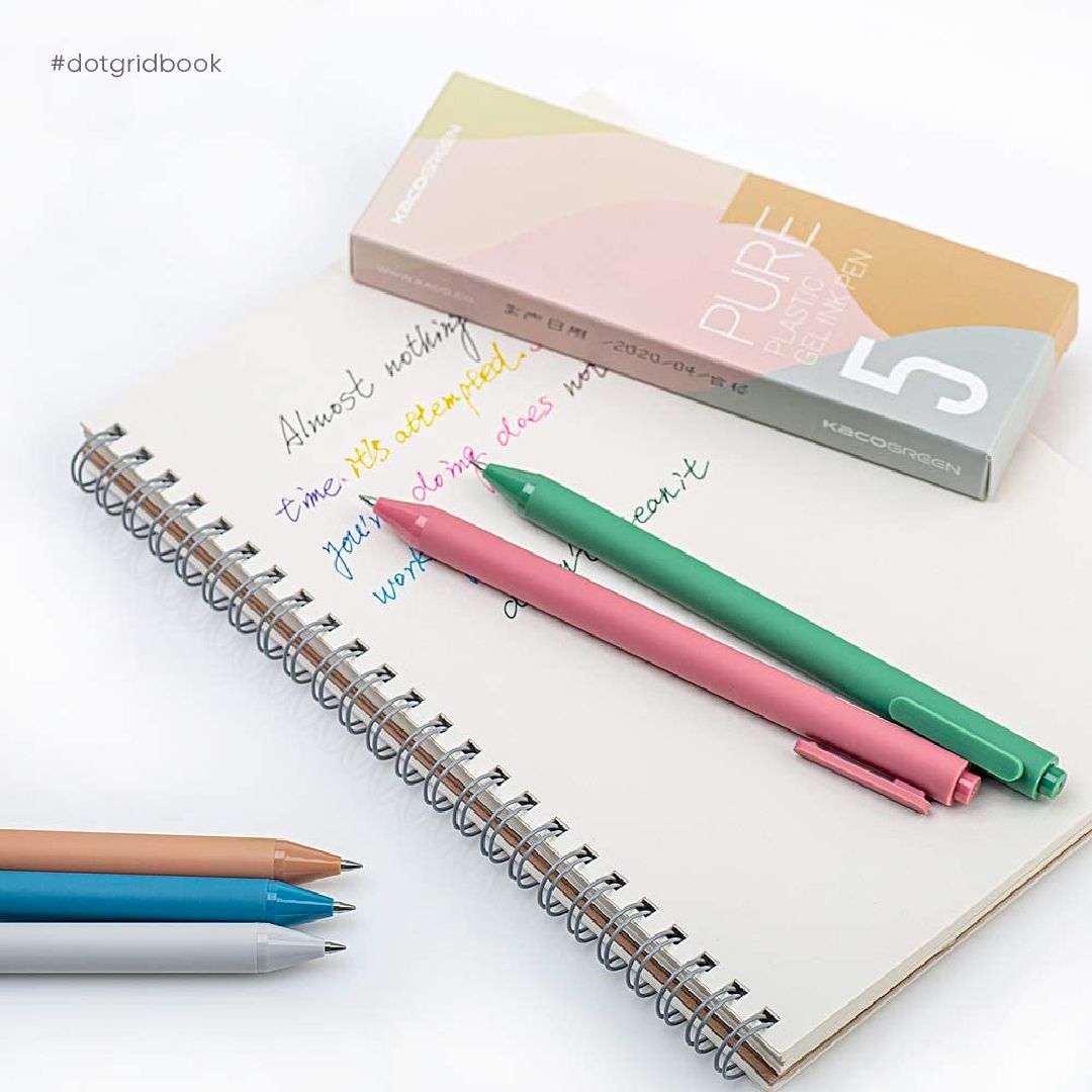 Bộ 5 bút bi gel KACO PURE Morandi mực nhiều màu