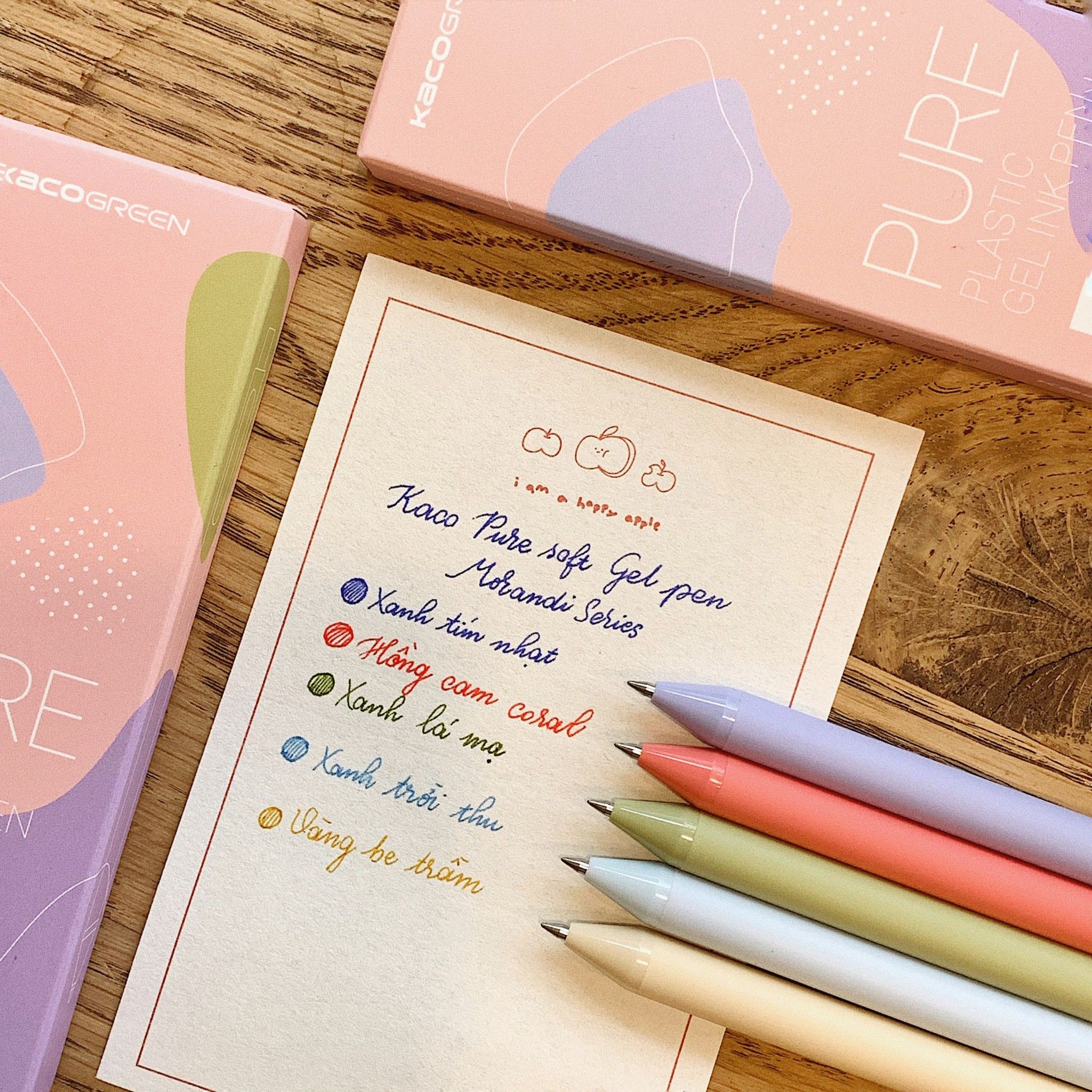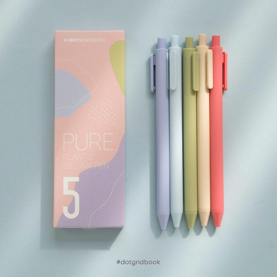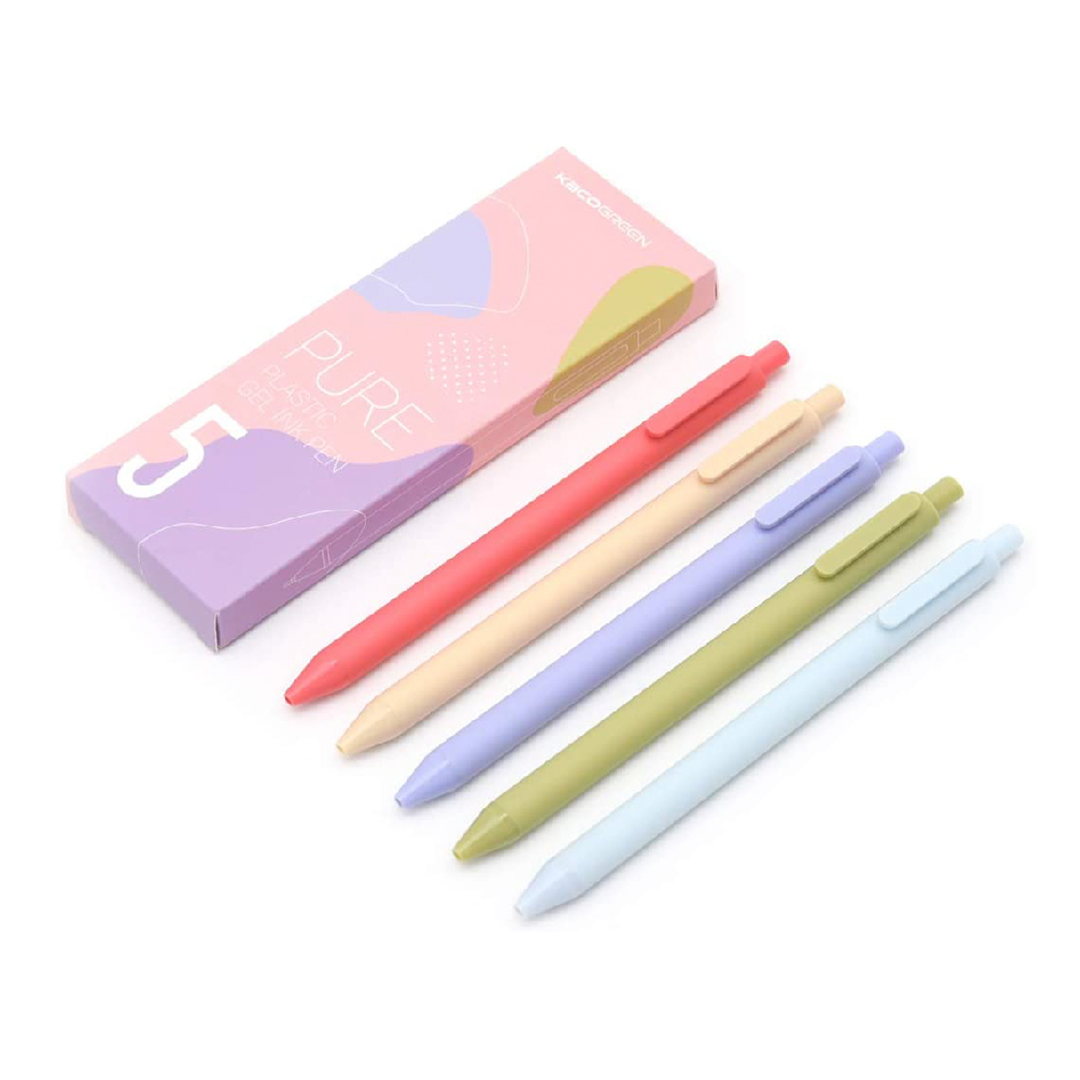 Bộ 5 bút bi gel KACO PURE Morandi 2 mực nhiều màu