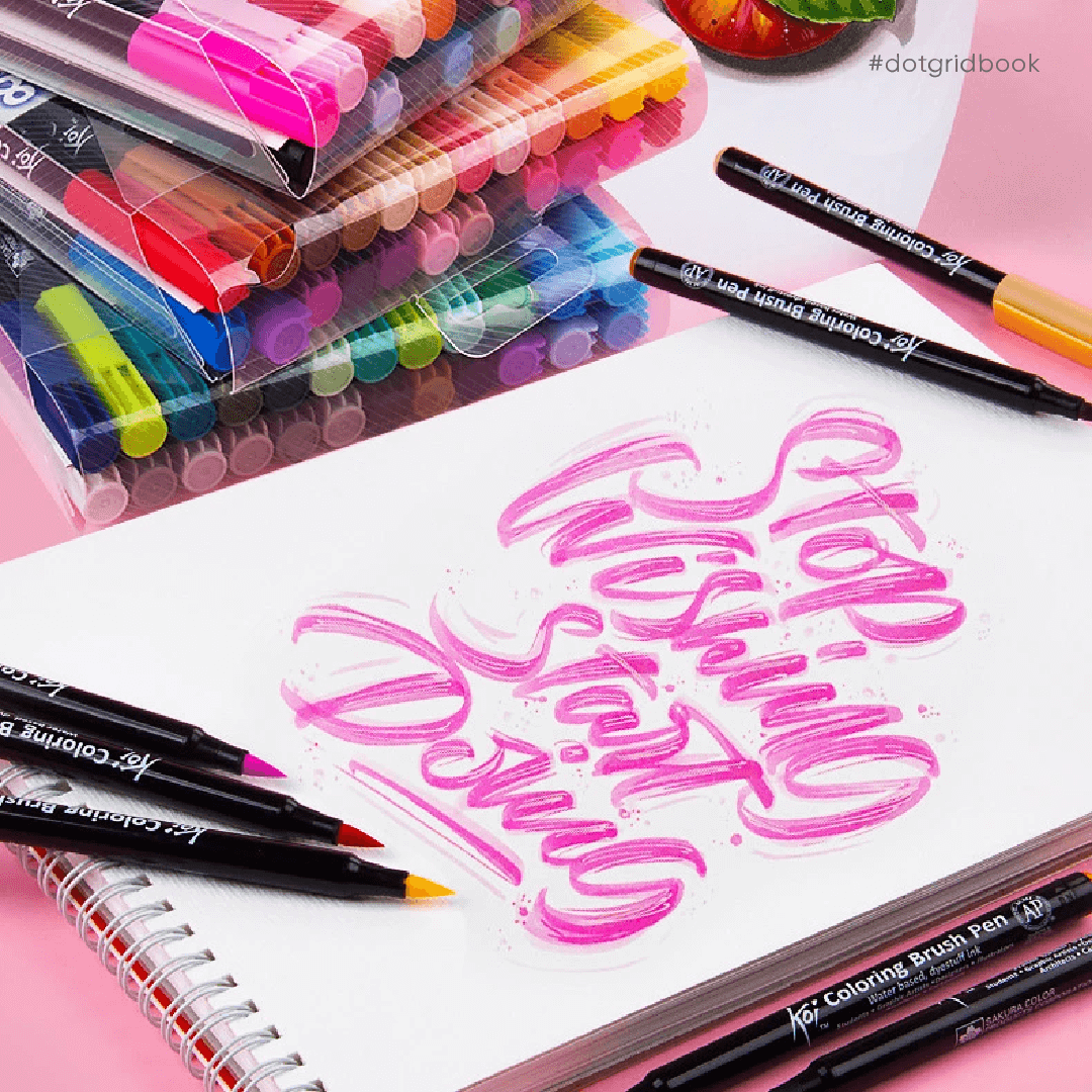 Sakura Koi Coloring Brush Pen là sự lựa chọn hàng đầu dành cho bạn muốn thử sức brush lettering với cây bút ở mức giá vừa phải mà vẫn có thể chọn lựa nhiều màu sắc phong phú. Dòng bút gồm 48 màu tươi sáng bao gồm cây bút blender giúp tạo những hiệu ứng màu sắc tuyệt đẹp mà không hề đòi hỏi kĩ thuật. Đầu bút mềm, đàn hồi, dễ dàng tạo hiệu ứng thanh đậm sẽ đem lại kết quả tập lettering rõ ràng nhất cho người mới bắt đầu