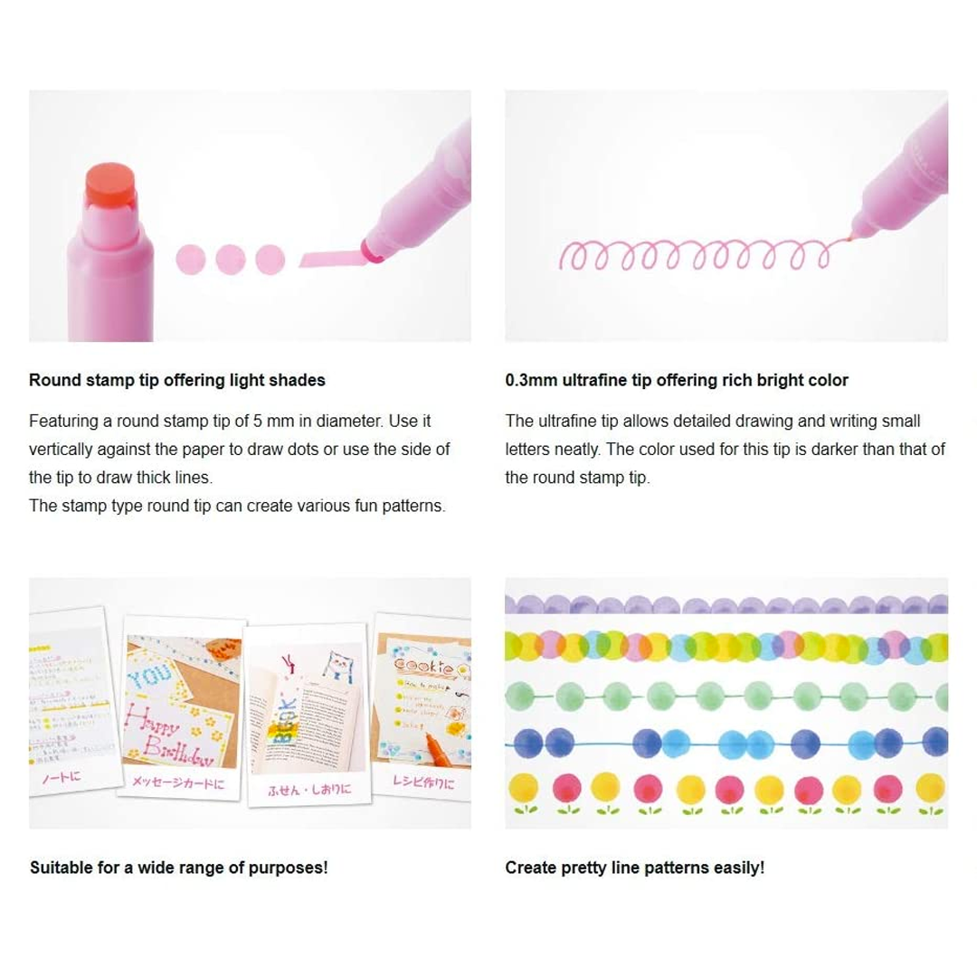 Bộ bút Play Color Dot với 2 đầu: 1 đầu fine 0.3mm thêm 1 đầu dạ tròn giúp việc highlight vui và dễ dàng hơn bao giờ hết! Nhờ thiết kế đầu bút đặc biệt tạo ra những chấm "Dot" xinh xắn, Play Color Dot vừa giúp đánh dấu những ghi chú quan trọng trong vở ghi bài hay cả trong sổ làm việc, vừa có thể trang trí thiệp, vẽ vời kiểu chấm tròn độc đáo.