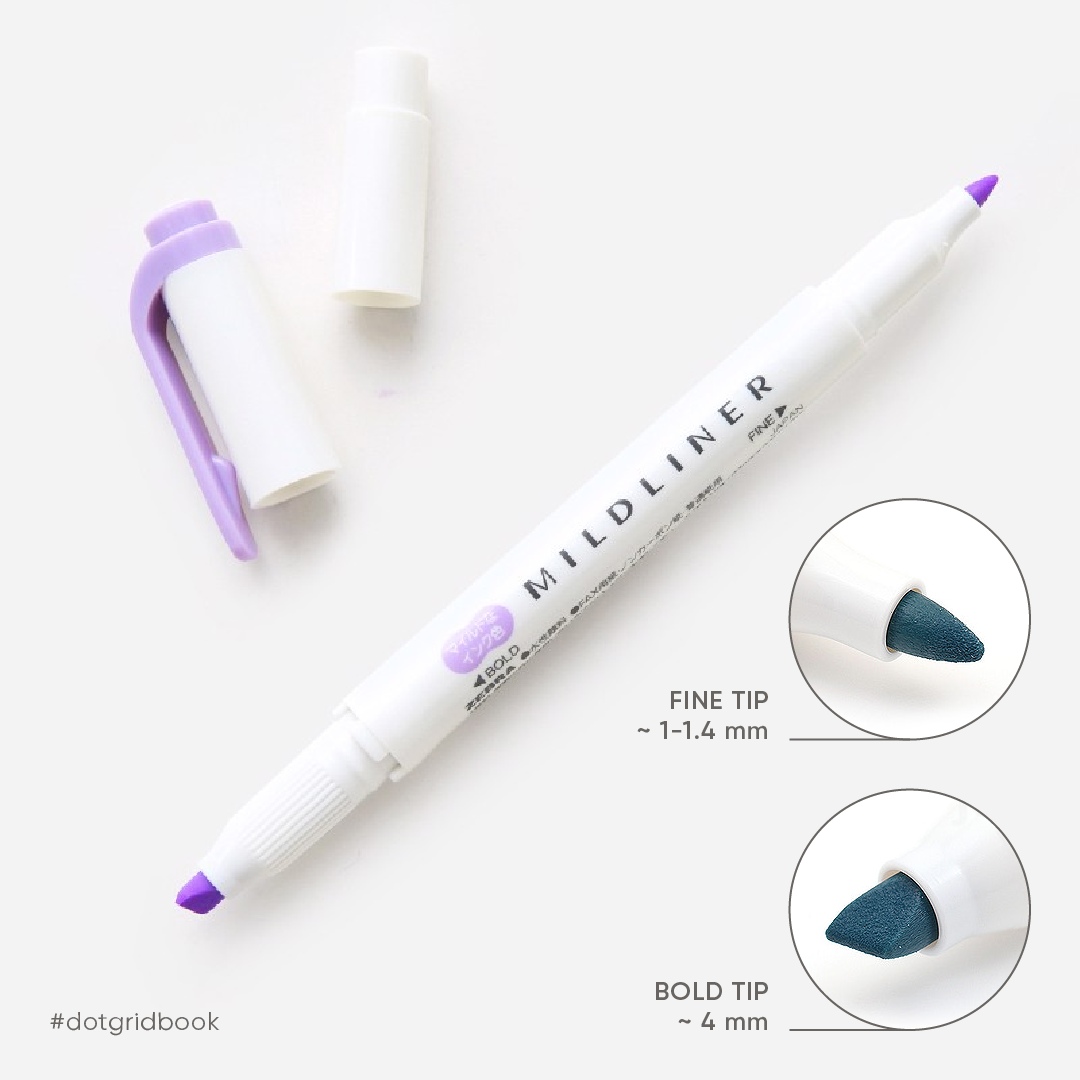 Với màu mực tươi sáng, bút Zebra Mildliner là sự lựa chọn hoàn hảo cho việc làm nổi bật các nội dung cần đánh dấu mà không lấn át các nội dung khác. Với đặc điểm mực nước và thiết kế hai mặt thuận tiện - một một đầu bút tiêu chuẩn dùng để đánh dấu nổi bật nội dung và một đầu bút dạ để gạch chân, tô và vẽ.