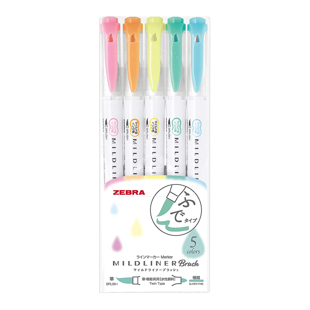 Set 5 Bút Highlight Zebra Mildliner Brush-WFT8-5C (Set xanh lá)