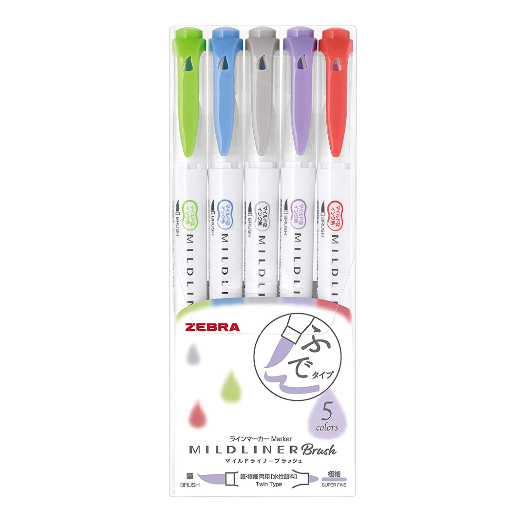 Set 5 Bút Highlight Zebra Mildliner Brush-WFT8-5C-RC (Set vàng)