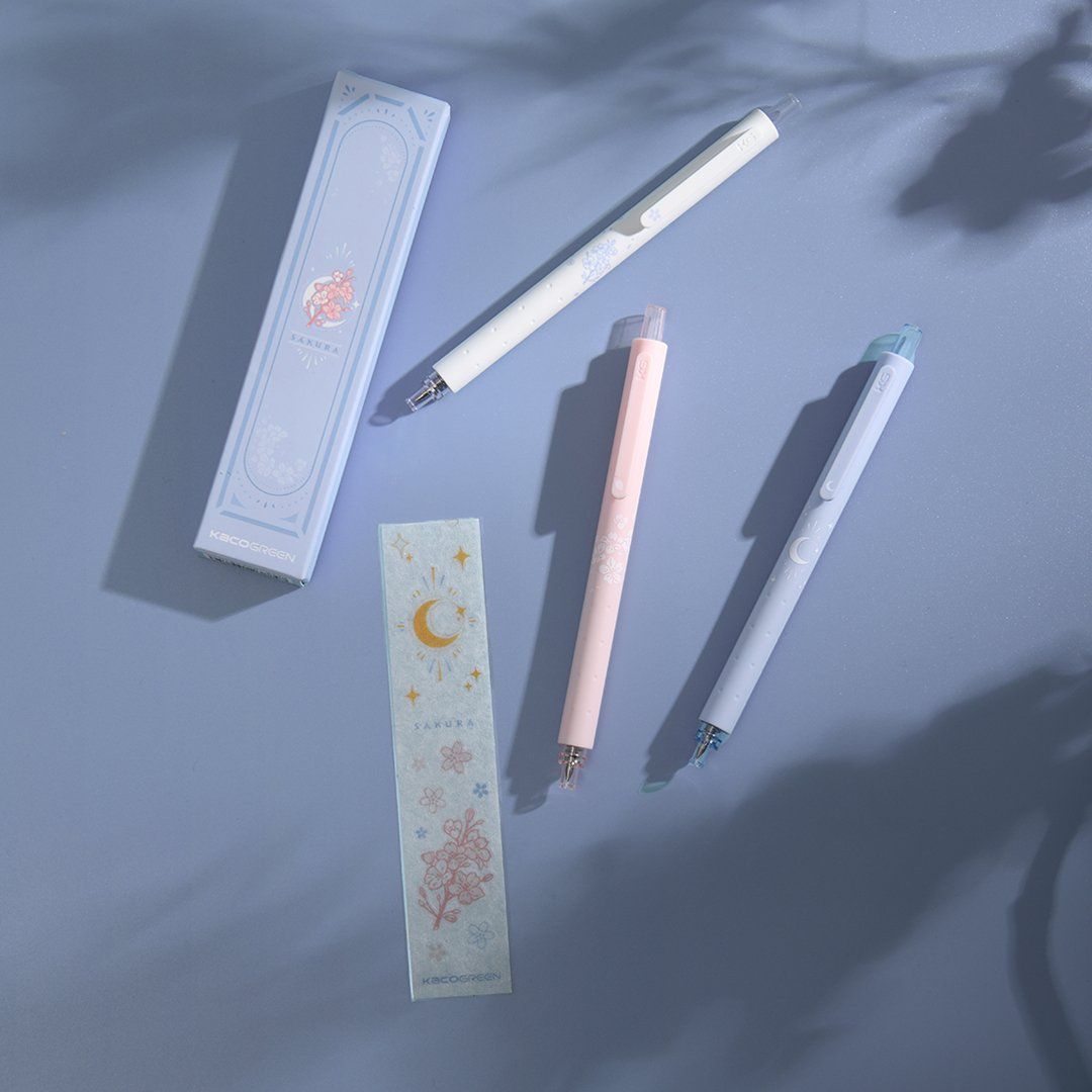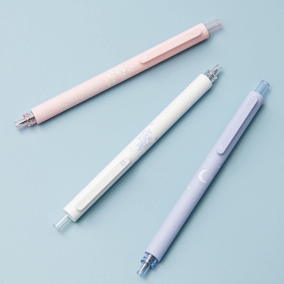Bộ 3 bút bi gel KACO ROCKET - Moon Night & Sakura - 2 mực đen 1 mực hồng ngòi 0.5mm