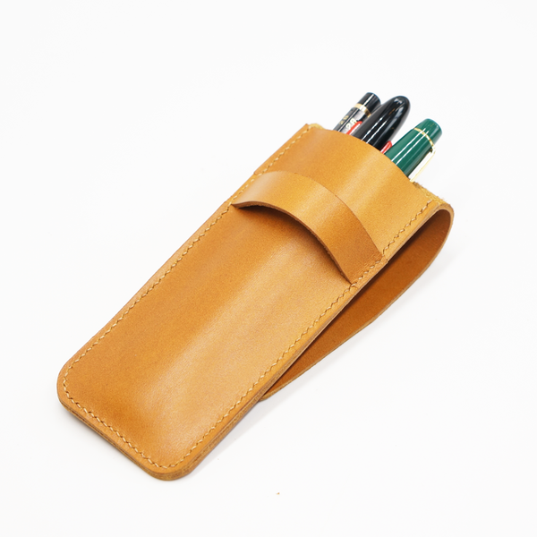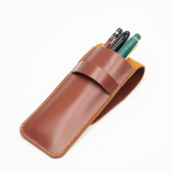 Túi đựng bút nắp gập được làm thủ công từ da bò thật. Sức chứa từ 2-3 bút máy ( với bút bi là 4 chiếc ) phần nắp gài có thể mở rộng tuỳ theo chiều dài bút. Kích thước nhỏ gọn phù hợp để những cây bút ưa thích sử dụng hàng ngày.